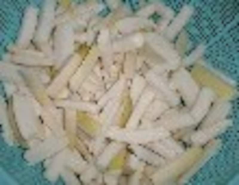 大根を拍子木切りにして天日に乾して、三杯酢に漬けたハリハリ漬けは、 その名の通り、ハリハリパリパリの歯ざわりが持ち味の お漬物です。今日は、 麺つゆを利用して作る、簡単なハリハリ漬けを紹介します。面倒でも、 大根がしんなりして、触っても手が濡れない位までは、必ず乾してください。乾すことによってハリハリ感が生まれます。 今日の大根は、朝乾して、二日目の午後に漬けたものです。 翌日から食べられます。 【水菜のハリハリ鍋】 【漬物】 大根のハリハリ漬け ■材料■ ・大根 ..............1本 ・酢 ................100cc ・麺つゆ ............100cc ・醤油 ..............100cc ・出し昆布 ..........10cm ・赤唐辛子 ..........1本 ■作り方■ 1.洗った大根を、皮ごと指の太さ程度の拍子木切りにする。 2.盆ザル等に広げ、天日に乾す。(丸一日~二日間) 3.サッと洗って、保存パックか密閉容器に入れる。ハサミで切った昆布と、種を取って半分にした唐辛子、調味料を入れる。 4.冷蔵庫に入れて漬け込む。翌日から食べられる。(画像は、当日→翌日→4日目) ● 昨日紹介したのは「赤カブの甘酢漬け」 レシピはこちら! 【編集部おすすめの購入サイト】Amazonで人気レシピの書籍をチェック!楽天市場で人気レシピの書籍をチェック!※記事内容は執筆時点のものです。最新の内容をご確認ください。※衛生面および保存状態に起因して食中毒や体調不良を引き起こす場合があります。必ず清潔な状態で、正しい方法で行い、なるべく早めにお召し上がりください。また、持ち運びの際は保存方法に注意してください。