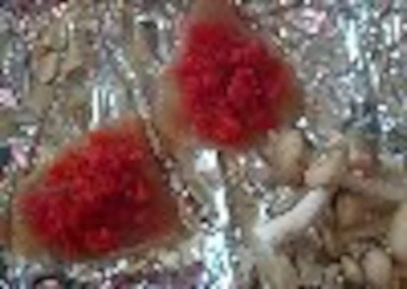 鶏肉を薄く切り、酒を少量ふる。明太子をほぐして塗りつける。