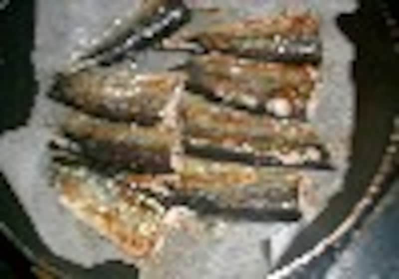 秋刀魚の頭と尾を切り落とし、ワタを取り除いて洗う。半分に切り、クレイジーソルト(なければ塩コショウ)とイタリアンパセリをふりかける。