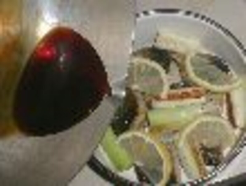 6.深さのある器に入れて、レモンのスライスをのせ、上から漬け汁をかける。1~2時間漬けておくと味が染みておいしくなる。