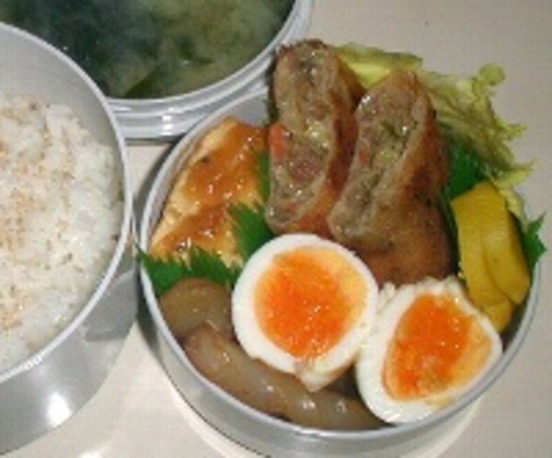 1. 2. 4. 5.3. 網焼き卵弁当■今日のおかず■・ 網焼き卵・ 厚揚げの焼き田楽・ 春巻き・ 手綱コンニャク・ 沢庵・ 白いリゴマ・ 若布とキャベツのみそ汁■レシピ■網焼き卵・厚揚げの焼き田楽焼き網に厚揚げと生卵をのせて焼く。焼けた厚揚げの片面に甘味噌をぬってサッとあぶる。春巻き冷凍保存しておいた春巻きを揚げたもの。手綱コンニャク手綱切りにしたコンニャクを小鍋に入れ、納豆添付のタレと水少量で炒り煮する。■次ページは、筑前煮弁当前のページへ12345次のページへ