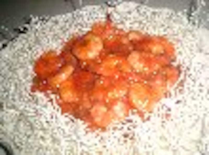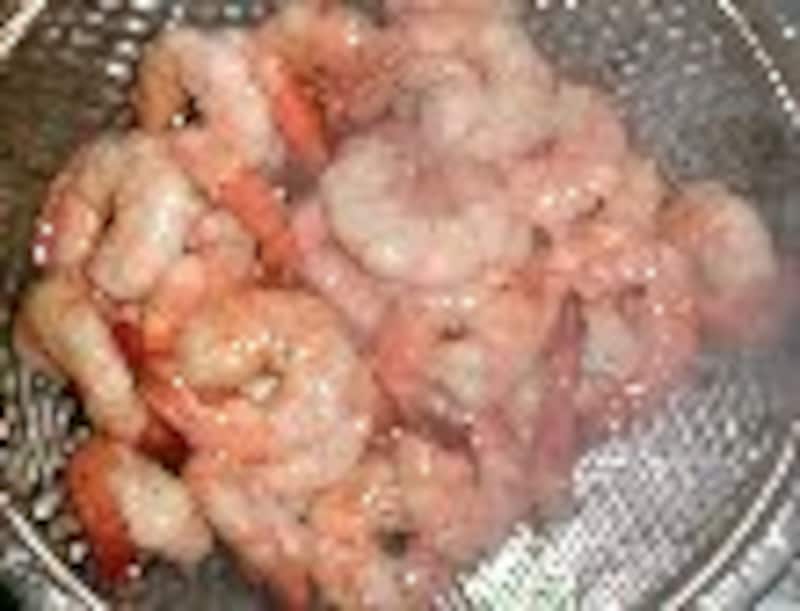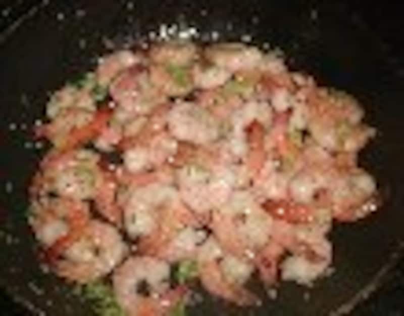 豆板醤がまだ、地元のスーパーでは売られていなかった頃、何か代わりになる調味料はないものかと考え、思い立って作ったのが この料理。 その後、豆板醤が手に入るようになってからも、うちの家族には、豆板醤よりクセの無い、ラー油で作るチリソース煮のほうが好まれるようです。 ■油通しをしないエビのチリソース エビのラー油入りチリソース煮 ■使用した材料■ 4~5人分 ・エビ(無頭ブラックタイガー) ........................580g ・長ネギ ................1本(みじん切り) ・にんにく ..........................1片(みじん切り)) ・しょうが ............................少々(ニンニクより少なめをみじん切り) ・酒・塩・コショウ・サラダ油・ごま油・片栗粉・卵白 チリソースの合わせ調味料 ・ラー油 ......................小さじ1.5 ・水 ..........................150cc ・中華だし顆粒(又はスープの素) ..........................小さじ1/3 ・トマトケチャップ ................大さじ4 ・さとう ..........................大さじ1 ・酒 ..............................大さじ2 ・塩 ..............................少々(2本指で1つまみ程度) ・醤油 ............................少量(小さじ1/2ほど) ・水溶き片栗粉 ....................適量 ・ごま油 ..........................お好みで少量 ■作り方■ 1.片栗粉とごま油以外の合わせ調味料を混ぜ合わせておく。えびの背ワタを竹串を刺してすくって取り除き、尾のひと節残して殻をむいて洗い、布巾に包んで水気をふきとる。 2.えびに、酒・塩・コショウを少量ずつ加えてもみこみ、次に卵白1/2コ・ごま油少々・片栗粉大さじ1を混ぜ、最後にサラダ油大さじ1をまぶして20~30分ほどおく。 3.低めの温度の揚げ油(少なくて良い)に入れ、赤くなったら金ザルにとって油きりする。←油通し 4.鍋に油を大さじ1熱し、ニンニク、ショウガ、半量のネギを炒める。 5.えびを入れて2~3回鍋を振る。 6. 合わせ調味料を加え、水溶き片栗粉を加えてとろみをつけ、残りの長ネギを加えて炒め合わせ、ごま油を少量回しいれる。 7.揚げた春雨の真ん中に盛りつける。 ひとこと 食べた後の皿に、ソースがだぼだぼ残っているのが嫌なので、調味料の分量はぎりぎりです。 エビの量が多少少なくても、ソースの分量は同量で大丈夫です。ソースの周りに油がにじみ出るのも嫌なので、油通しの後の油は、しっかり切ってあります。 ■ 昨日紹介したのは「お釜でふかふか中華まん」 レシピはこちら! 【編集部おすすめの購入サイト】Amazonで人気レシピの書籍をチェック!楽天市場で人気レシピの書籍をチェック!※記事内容は執筆時点のものです。最新の内容をご確認ください。※衛生面および保存状態に起因して食中毒や体調不良を引き起こす場合があります。必ず清潔な状態で、正しい方法で行い、なるべく早めにお召し上がりください。また、持ち運びの際は保存方法に注意してください。