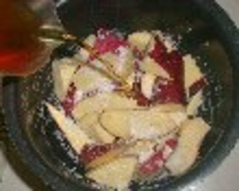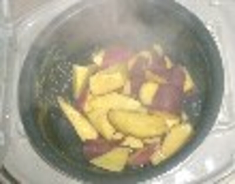 今日は、つやつやの大学ポテトを、炊飯器で作ります。 油で揚げてないので健康にも良いかと思います。生の芋を砂糖蜜で煮ることになりますので、普通の鍋では、柔らかくなる前に 焦げついてしまいますが、炊飯器ならそんな心配もなく、ねっとり蜜がからんだ甘~い大学ポテトが、楽々作れます。 ■【大学芋のレシピ2つ】 ・【炊飯器クッキング&注意点】 揚げない大学ポテト ■材料■ ・さつま芋 .......................500g ・さとう .........................大さじ5 ・水 .............................大さじ4 ・しょう油 .......................小さじ1 ・サラダ油 .......................少々 ・黒ゴマ .........................適量 ■作り方■ 1.さつま芋を洗って乱切りにし、水洗いして水をきる。 2.内釜に薄くサラダ油をぬり、芋をいれる。 3.砂糖を加え、釜を両手で持って振り、芋に砂糖をまぶす。 4.水としょう油を注ぎ入れ、普通に炊く。 5.炊き上がったら、釜を取り出して少し冷まし、ヘラでかき混ぜて、ゴマをふる。 このレシピへの質問は、上記のガイドお問い合わせまで! ■ 昨日紹介したのは「炊飯器でミートローフ」 レシピはこちら! 【編集部おすすめの購入サイト】Amazonで人気レシピの書籍をチェック!楽天市場で人気レシピの書籍をチェック!※記事内容は執筆時点のものです。最新の内容をご確認ください。※衛生面および保存状態に起因して食中毒や体調不良を引き起こす場合があります。必ず清潔な状態で、正しい方法で行い、なるべく早めにお召し上がりください。また、持ち運びの際は保存方法に注意してください。