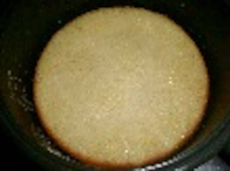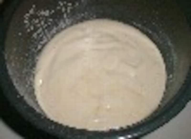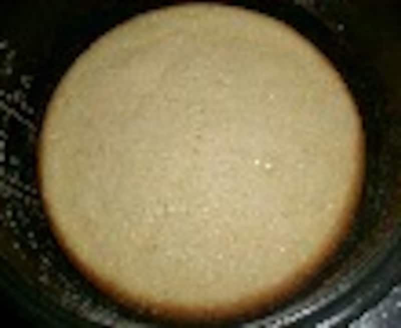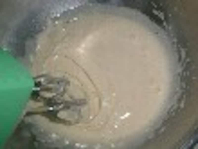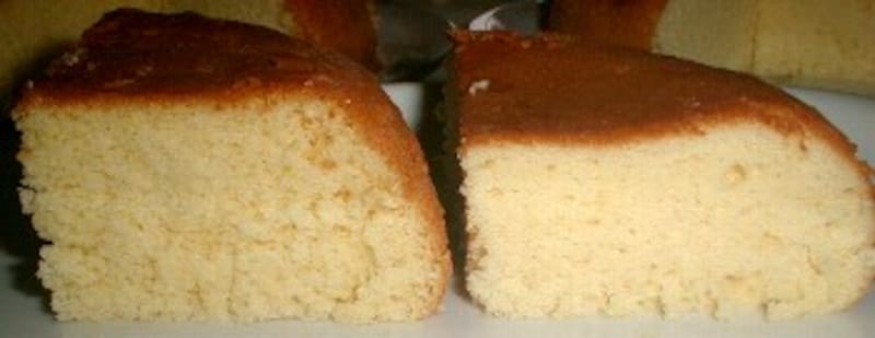 何故、カステラを強力粉で作るのかという質問を頂きます。 答えは簡単、強力粉で作ったカステラの方が私好みだからです。 薄力粉で作ったカステラが、ふわふわ柔らか過ぎて 頼りないのに対して、 強力粉使用の方は、もっちりと食べ応えがあるので、 生クリーム等でデコレーションしないのなら、こちらの方が美味しいと 思うのです。が、しかし、どちらが好きかは人それぞれでしょうから、 今日は、二通りのレシピと、その出来栄えを紹介しますので、 是非 一度、自分で作って食べて、判断してみてください。 このカステラの特徴は、内釜に塗る以外は、バターやサラダ油を使ってないという点です。 今日は三合炊き炊飯器で作りました。五合用炊飯器使用の場合は、分量を二倍にするか、 こちらの分量で作ってください。 ケーキ作りを成功させる最大のコツは、レシピ通りに作るということです。それで成功したら、 次からは自分なりにアレンジしてみるのも良いでしょう。 使用した道具:東芝三合炊き炊飯器・ハンドミキサー・ボール・ゴムベラ ■炊飯器料理一覧と注意点 左が強力粉カステラ、右が薄力粉カステラ (1)強力粉カステラ ■材料■ 3合炊き炊飯器用 ・強力粉 ........................40g ・砂糖 ..........................40g ・卵 ............................L(殻付きでの重さが72g)1コと、黄身1/3コ ・メープルシロップ(又は蜂蜜) ............................大さじ1/2 ・牛乳 ............................大さじ1 ・ミリン ..........................小さじ1 ■作り方■ 1.内釜にサラダ油を薄く塗り、強力粉を薄くはたいておく。 強力粉を二回ふるう。 牛乳とメープルシロップとミリンを合わせて、電子レンジに20秒ほどかけて温めて混ぜる、又は湯せんで溶かす。 2.ボールに卵(1個と黄身3分の1)と砂糖を入れ、40℃位の湯せんにかけながら、ハンドミキサーで泡立てる。 七分立てになったら湯せんから外し、温かい牛乳液(卵液の温度より低すぎると失敗の原因になる)を加え、生地が白っぽくもったりして、たらした生地で書いた文字が消えない位まで、 しっかり泡立てる。 3.粉を全体に広げて加え、 ハンドミキサーを低速に落としてかき混ぜ、粉っぽさがなくなったら止める。(15秒程度) 4.真ん中をくぼませ加減に流し入れ、布巾の上にトントンと三回落として泡切りし、普通に炊く。 5.スイッチが切れたら取り出して釜から外し、網の上で3分ほどあら熱をとって、ラップかポリ袋で包み、完全に冷めるまでそのままにする。 (2)薄力粉カステラ ■材料■ 3合炊き炊飯器用 ・薄力粉 ........................40g ・砂糖 ..........................40g ・卵 ............................L(殻付きでの重さが72g)1コと、黄身1/3コ ・メープルシロップ(又は蜂蜜) ............................大さじ1/2 ・牛乳 ............................大さじ1 ・ミリン ..........................小さじ1 ■作り方■ 1.内釜にサラダ油を薄く塗り、粉を薄くはたいておく。 薄力粉を二回ふるう。 牛乳とメープルシロップとミリンを合わせて、電子レンジに20秒ほどかけて温める、又は湯せんで溶かす。 2.ボールに卵(1個と黄身3分の1)と砂糖を入れ、40℃位の湯せんにかけながら、ハンドミキサーで泡立てる。 七分立てになったら湯せんから外し、温かい牛乳液(卵液の温度より低いと失敗の原因になる)を加え、生地が白っぽくもったりして、たらした生地で書いた文字が消えない位まで、 しっかり泡立てる。 3.粉を全体に広げて入れ、ゴムベラで底からすくい上げるようにかき混ぜる。 4.内釜に流し入れ、真ん中をくぼませ加減にする。布巾の上にトントンと三回落として泡切りする。普通に炊く。 5.スイッチが切れたら取り出して釜から外し、網の上で3分ほどあら熱をとって、ラップかポリ袋で包み、完全に冷めるまでそのままにする。 ひとこと 薄力粉使用のカステラの方が、膨らみが良いので、かさが大きくなります。 強力粉の方がキメが細かく重量感があります。粉以外の違いは、粉の混ぜ方です。 右が強力粉、左が薄力粉 このレシピへの質問は上記のガイド問い合わせまで。 ■ 昨日紹介したのは「ミヌダル」 レシピはこちら! 【編集部おすすめの購入サイト】Amazonで人気レシピの書籍をチェック!楽天市場で人気レシピの書籍をチェック!※記事内容は執筆時点のものです。最新の内容をご確認ください。※衛生面および保存状態に起因して食中毒や体調不良を引き起こす場合があります。必ず清潔な状態で、正しい方法で行い、なるべく早めにお召し上がりください。また、持ち運びの際は保存方法に注意してください。