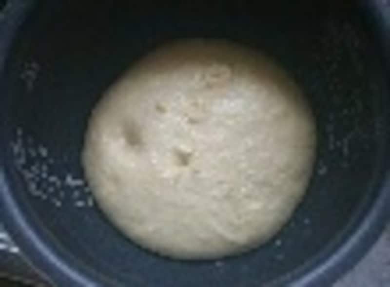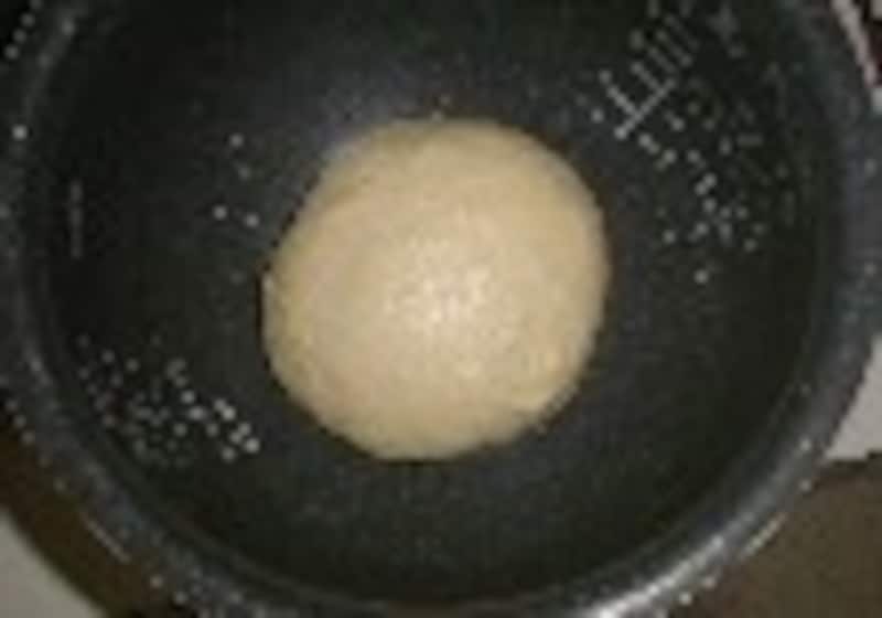 3.表面がなめらかになったら丸くまとめ、サラダ油をぬった内釜にいれて、保温10分→スイッチを切って25~30分、