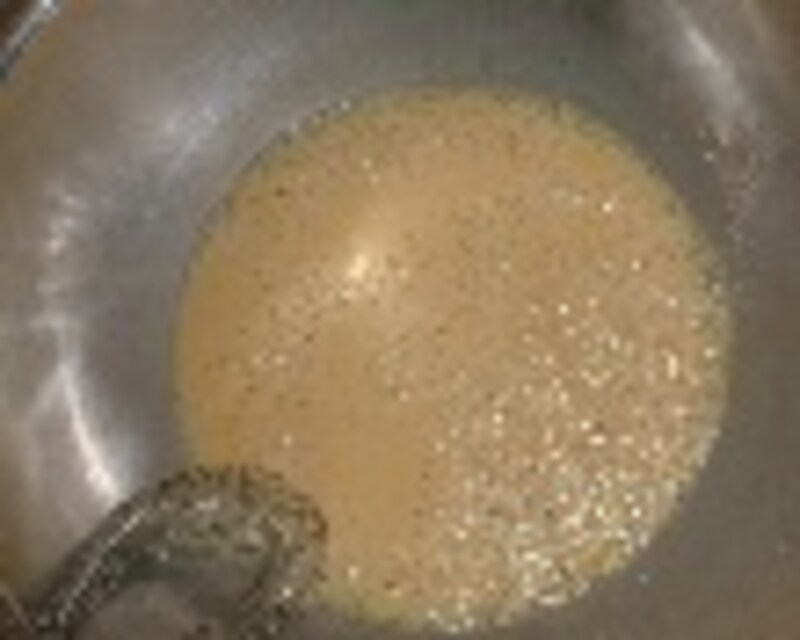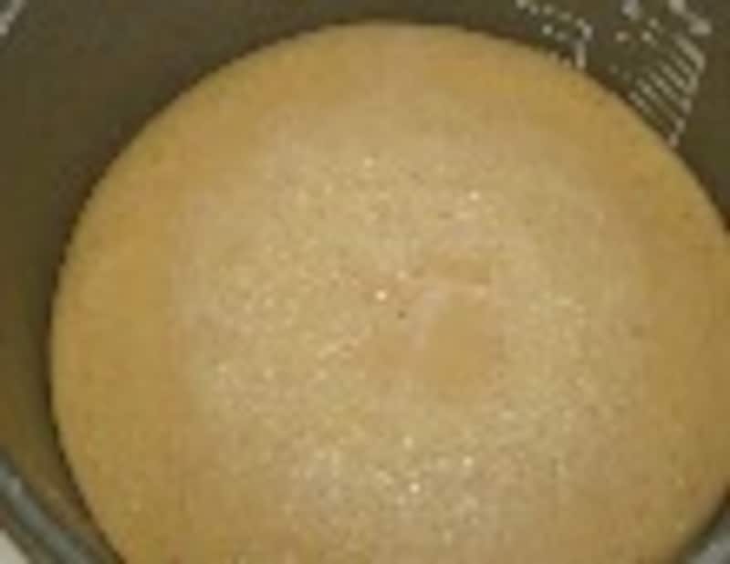 4.サラダ油をつけたペーパーで内釜をふき、タネを流し入れ、普通に炊く。