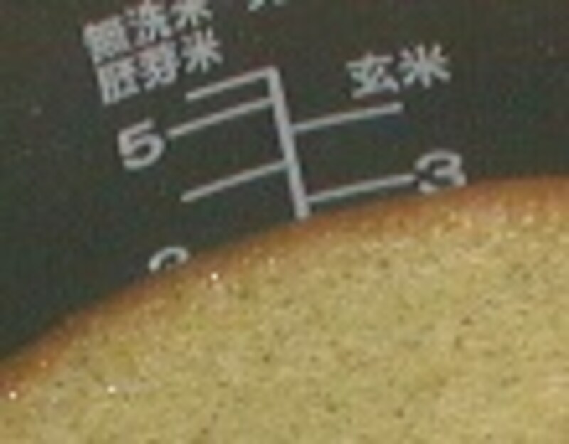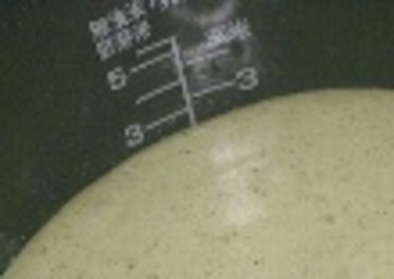 6.内釜に流しいれ、重ねた布巾の上に、2センチほど上から トントントンと 3回落として泡切りし 普通に炊く。(圧力式炊飯器の場合は、普通炊きでも良いが、無圧メニュー「すしごはん等」を選ぶとふくらみがよい。)
