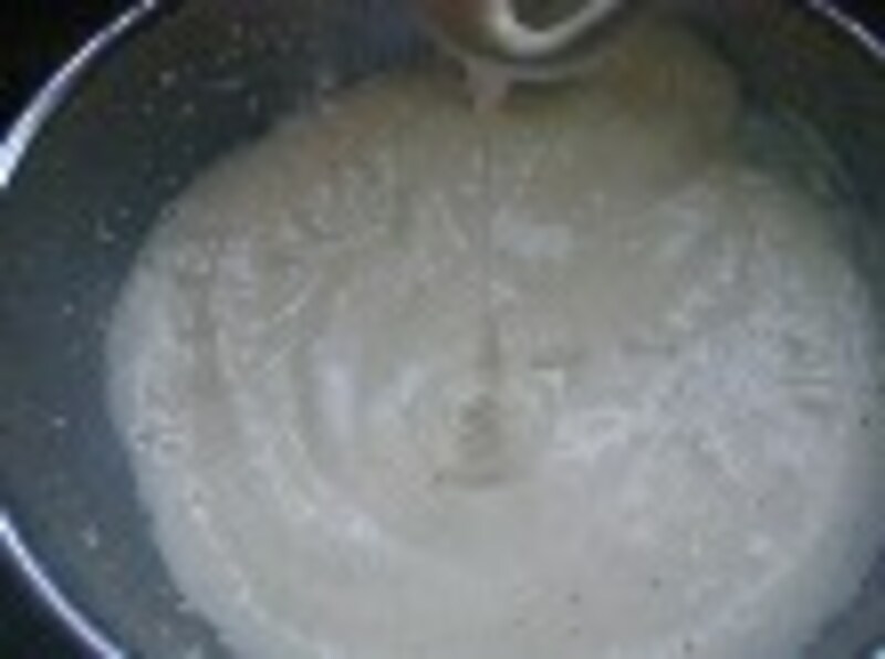1.内釜にサラダ油を薄くぬり、粉をはたいておく。
