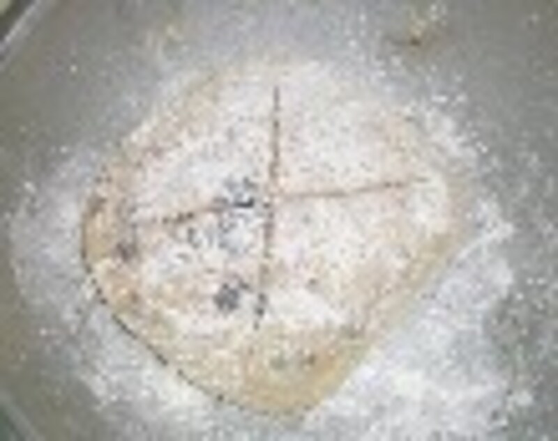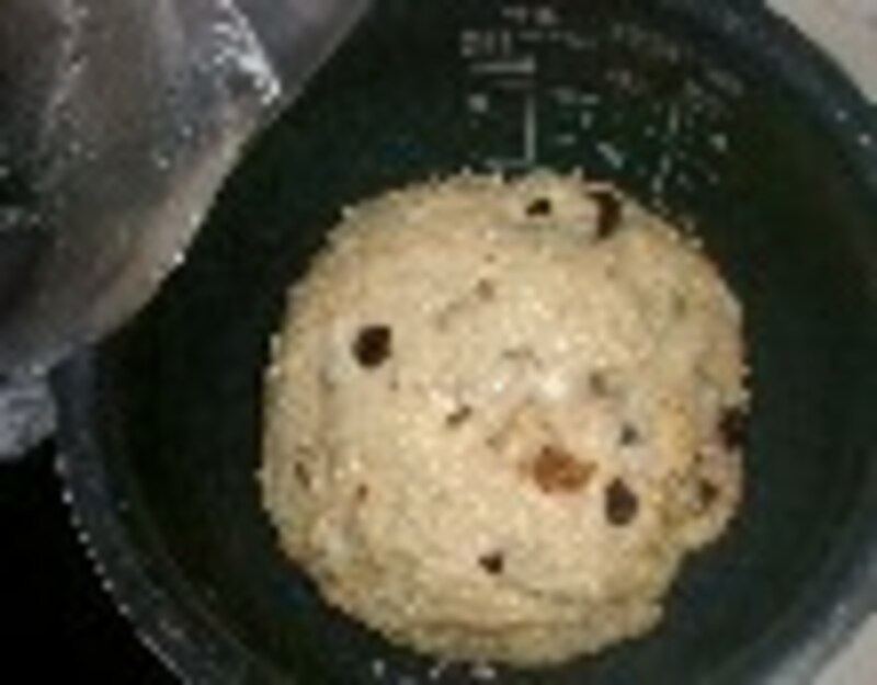 ナイフで切れ目を入れ、粉をつけた面を下にして、油を塗った内釜に入れ、生地の表面に霧吹きで水を吹きつけて炊く。