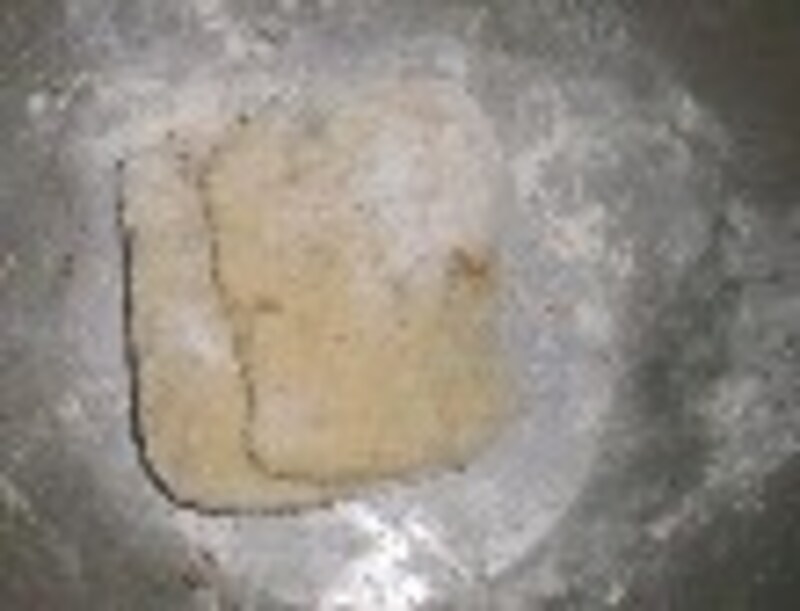 9.ボウルにそっと取り出し、茶漉しで強力粉をふりかけ、
