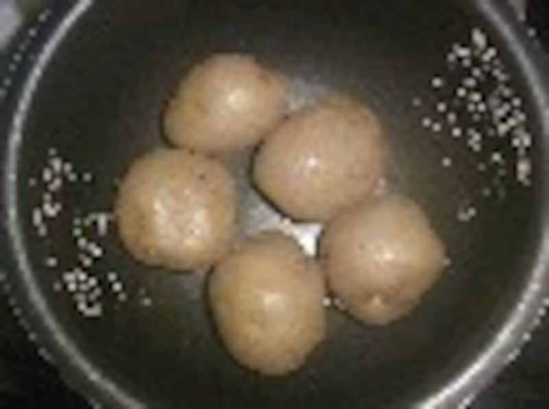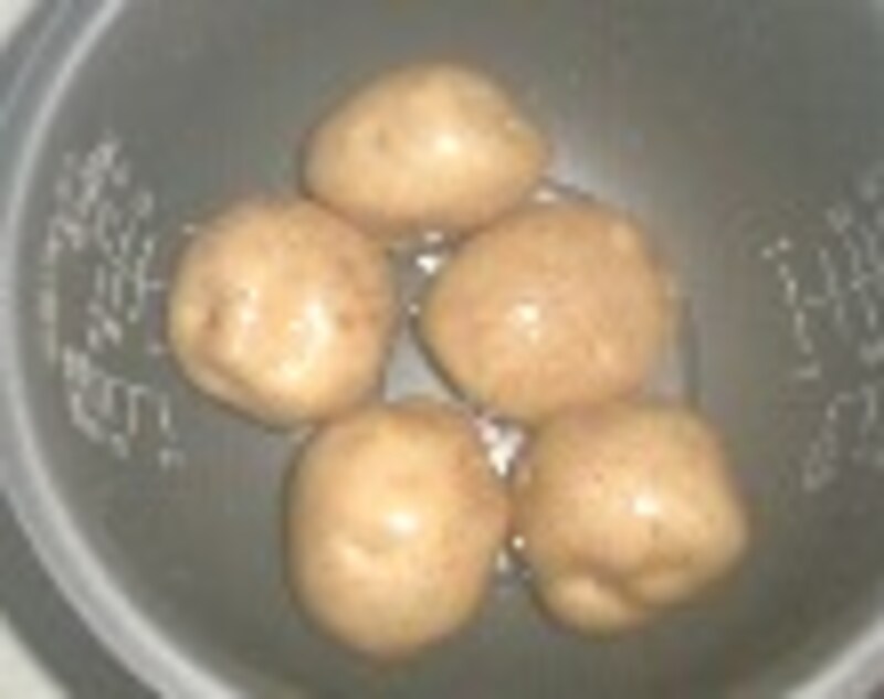1. じゃがいもをきれいに洗い、内釜に入れて水を加えて高速炊きで炊く。