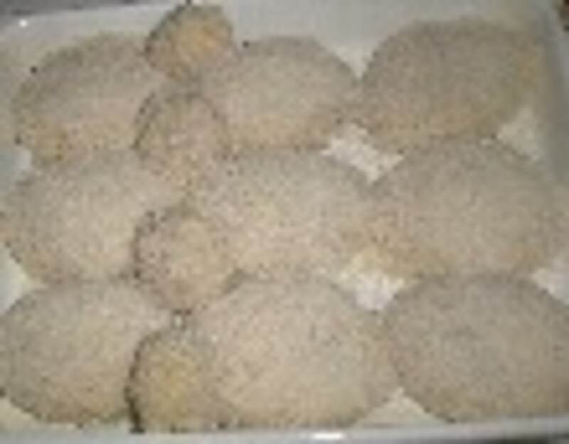 7. ボウルに小麦粉を1/3カップほど入れ、バットにパン粉を用意する。