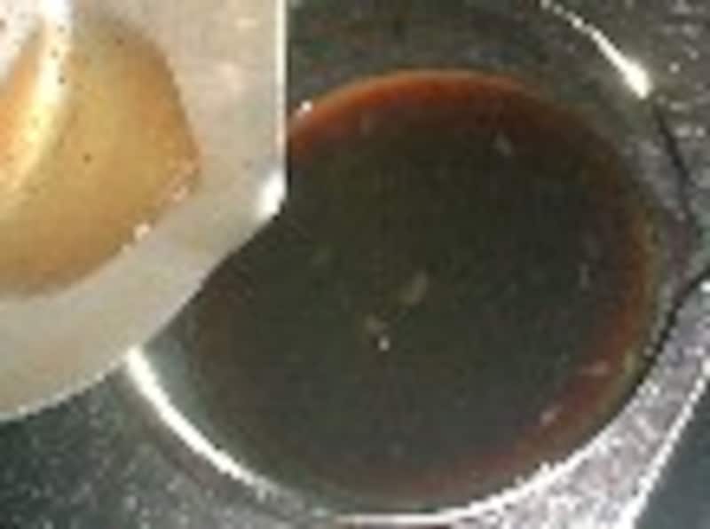 3. 絞り汁+醤油に、煮きったミリンと酒を加える。