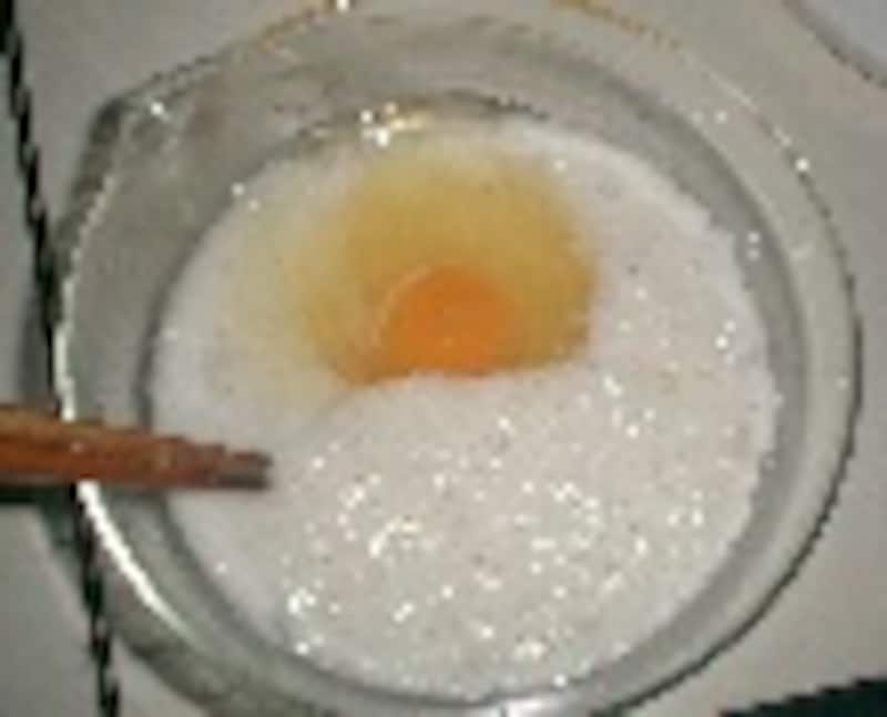 長芋をすりおろし、塩を一つまみ加えてよくかき混ぜ、卵を混ぜる。