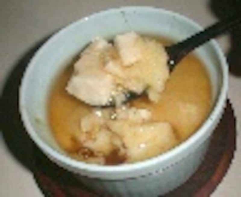 指で押してみて弾力があったら焼き上がりなので、取り出してあんをかけ、おろしショウガを添える。