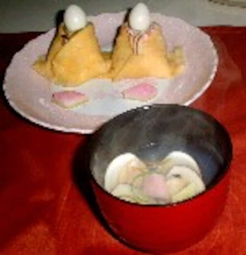 一昨年のお雛様は蒲鉾でした。昨年の雛寿司はひし形でした。今年のお雛様は玉子の衣を着ています。