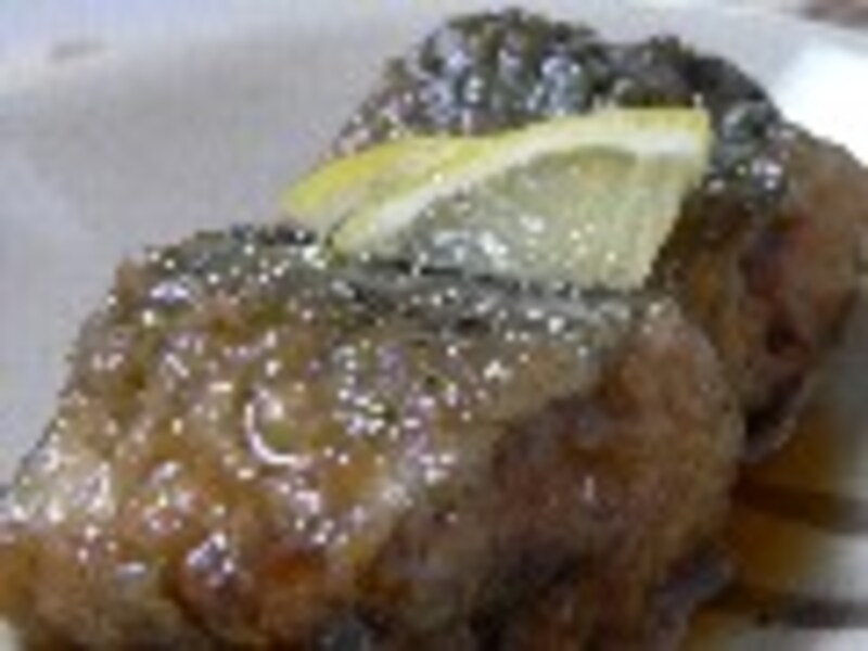 油で揚げ、薄切りレモン入り南蛮酢に漬ける。
