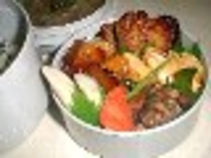 ★★★★★毎日のおべんとうレシピ集 三★★★★★ ◇◆◇通勤・通学弁当◇◆◇ ・麩の味噌あえ弁当 他に、大根のマヨネーズきんぴら、豆腐かすてら、すき焼き風煮物 ・ロールベーコンエッグ弁当 竹輪とネギのマヨネーズ辛子味噌和え、里芋の磯辺焼き、ウインナーのカレー炒め ・長芋野菜あんあかけ弁当 コリンキーの甘酢漬け、鶏肉とじゃが芋のマーマレード煮 ・豚肉と湯葉のしゃぶしゃぶ弁当 白菜とベーコンのあっさり炒め、竹輪のチーズ詰め、白菜と肉団子の煮込みスープ ・オーブントースター活用弁当 牛肉のネギロール、ほうれん草のグラタン、焼き芋サラダ、茄子焼き ・鶏の即席じぶ煮弁当 中華団子のゴマ焼き、ほうれん草のおひたし ・豚キムチご飯弁当 えびサラダ、大根と乾物の煮物、大根の皮の即席ハリハリ漬け、 ・焼き白菜肉だんご弁当 もやしとほうれん草の土佐酢あえ、焼きトマト ・豆腐の山椒焼き弁当 ハムのチーズサンド、セロリサラダ、茸のオムレツ ・椎茸とピーマンの挽き肉炒め弁当 ブロッコリーサラダ、里芋の中華風煮物、なめこの当座煮 ・11月のお弁当 もってのほかの酢の物、もつ煮、あさりの缶詰と玉ねぎの煮物、瓜キムチ ・鮭弁当 豆乳蜂蜜玉子焼き、椎茸のしょう油おかかまぶし ・海老のキムチリ弁当 海老のキムチリソース、紫芋菜餅、ベーコン巻き胡瓜の網焼き ・鮭のムニエル弁当 椎茸ソテー、海草サラダ、ロールサラダ ・鱈ちり活用弁当 焼き塩鱈、薩摩芋と油揚げの焼きサラダ、ポーチドエッグ ・カレーグラタン弁当 ホイルカップオムレツ、もやしのお浸し、竹輪の青海苔天、黒砂糖大学ポテト ・茄子の胡麻味噌炒め弁当 アスパラとトマトと薩摩芋のサラダ、竹輪の胡瓜巻き ・茄子のネギソース弁当 ゆで茄子のネギソースかけ、糸こんにゃくのチリメンジャコ煮、ハムのチーズ焼き ・電子レンジ活用弁当 レンジで南瓜のカツオ煮、煎り卵・糸コンのツナ煮 ・茹でキャベツのカレー和え弁当 キャベツカレーあえ・薩摩揚げの七味焼き・ナスの辛炒め煮 ・豚バラの塩焼き弁当 ウインナーの玉子巻き・ニラの玉子巻き・厚揚げとキャベツの煮物 ・トマトコロッケ弁当 トマトコロッケ・冷や汁・セロリのチーズサラダ・焼きししゃも ・ハムのキャベツ巻き弁当 ハム巻きキャベツ・牛乳煮チキンのチーズ焼き・竹輪とネギの煎り煮 ・秋弁当 しめじの青ジソソテー・マカロニサラダ・豆乳玉子焼き・竹輪のみそ焼き・塩鮭酢橘添え ・煮込みハンバーグ弁当 ベーコン韮玉・なすのビール漬け・キャベツのけんちん煮 ・さつま芋のチーズマリネ弁当 茄子の青ジソサラダ・玉子焼きの甘酢アン・南瓜煮昆布 ・豆腐バーグ弁当 豆腐バーグと厚揚げの焼き煮・ゆで茄子 ・焼き秋刀魚の南蛮漬け弁当 焼き秋刀魚の南蛮漬け・セロリのチーズまぶし・厚揚げとこんにゃくのジャコ煮 ・鮭ご飯弁当 ポテト入りスクランブルエッグ・鮭ごはん・竹輪と野菜スティック ・掻き揚げ重弁当 掻き揚げ・麩の玉子とじ・胡瓜の辛子漬け ・チェッカー海苔弁当 竹輪の甘辛煮・鶏青ジソ揚げ・もやしと生姜の酢の物 ・つな じゃが弁当 つなじゃが・トマトのベーコン巻き焼・カニカマの塩昆布和え ・貝飯弁 当 ニシ貝の佃煮・パセリ入り玉子焼き・胡瓜と若布の酢の物 ・ハム チーズサンドソテー弁当 ハムのチーズサンドソテー・卵のポン酢醤油焼き・かにスティックのレタスシソ巻き ・豚の 即席すき煮弁当 豚すき煮・人参の味噌キンピラ・パプリカとセロリのマリネ ・ハムとチーズの重ね焼き弁当 ハムチーズ焼き・茹で厚揚げの芝麻醤和え・もやしとツナのポン酢 ・韮の玉子焼き弁当 韮の玉子焼き・豆乳おでん・コンニャクの梅和え・ピーマンとハム炒め ・ヘルシーロールキャベツ弁当 ヘルシーロールキャベツ・キュウリの麦味噌ぞえ・焼きオクラ・焼き椎茸・ニラのジョン ・ハムのチーズピカタ弁当 ハムのチーズピカタ・韮巻き玉子・コーンキュウリサラダ・芋煮 ・半パスタ弁当 カブと薩摩揚げの柚子コショウ炒め・麩入り卵のオーブントースター焼き ・すき焼きの玉子とじ弁当 ハム卵・もやしと薩摩揚げの辛子酢味噌・トマトとキュウリのサラダ ・竹の子ごはん弁当 麩の玉子とじ・蒲鉾ピカタ・茄子ピカタ・キャベツと竹輪の辛子酢味噌 ・竹輪のマヨミソいかだ焼き弁当 パーナ貝のパン粉焼き・ポテトサラダ・レタスロール ・砂肝の生姜煮弁当 蒲鉾とキュウリのワサビ和え・桜海老入り玉子焼き・白菜の刻み漬け ・筍ミソマヨ田楽弁当 イカ南部焼き・甘海老のチリソース焼き・ゆで茄子の生姜醤油 ・グリンピースご飯弁当 セロリの葉の佃煮・ゆで豚のゴマソース和え・焼き茄子 ・骨付き鶏肉の照り煮弁当 骨付き鶏肉と野菜の照り煮、もやしゴマだれ和え、茄子みそ焼き、春雨スープ ・油揚げの肉詰め焼き弁当 油揚げの肉詰め焼き、もつ煮、シメジと竹輪とネギの焼きびたし、ジャー卵 ・ソース焼きそば弁当 焼きそば、福神漬け、ハムエッグ、辛ネギスープ ・かやくご飯弁当 焼
