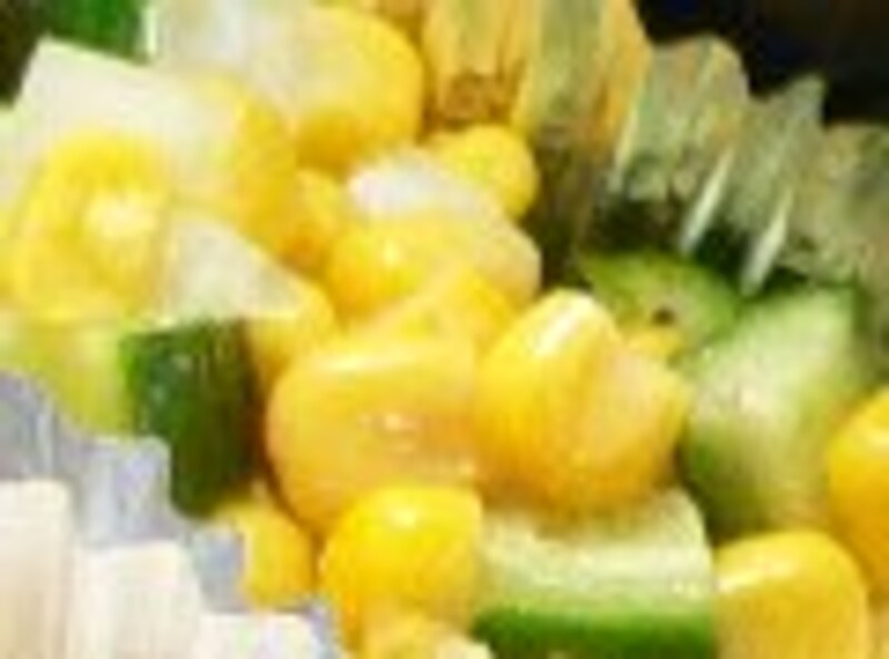 キュウリと玉ねぎをサイコロに切り、コーンとあわせて塩コショウし、イタリアンドレッシングで和える。