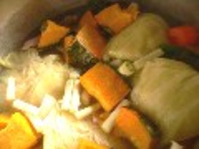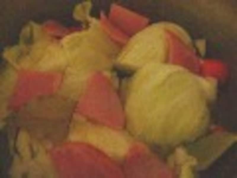 明後日から一週間、家を留守にすることになりました。できれば、冷蔵庫の中の食材をぜ~んぶ使い切って、すっきり出かけたいものです。 何かと忙しいので、手間のかかる料理はパス。ということで、今日は、野菜室の中で一番大きな顔をしてる、キャベツを1個使ってしまおうと思います。 市販のクリームシチューの素を使い、 野菜室の、クリーム味に合いそうな野菜を集めて煮込みました。ちょっと硬くなったチーズも入れて。 節約・手抜きレシピ集 残り物使い切り料理 キャベツのクリーム煮 ■使用した材料■ 4人分 ・キャベツ ................1個 ・長ネギ ..................2本 ・人参 ...................1本 ・かぼちゃ ................350g ・ロースハム .............3枚 ・ローリエ ..................1枚 ・水 ........................1300cc ・白ワイン(又は清酒) ..............50cc ・牛乳 ..................1カップ ・チーズ ................2切れ ・固形スープ ................1個 ・クリームシチューの素 ................1箱 ・クルトン用食パン ................1枚 ■作り方■ 1. キャベツは芯を外して4つに切る。人参は皮をむいて大ぶりに切る。南瓜は一口大に切る。ネギはぶつ切りにする。ハムは4つに切る。 2. 鍋にキャベツ、人参、ハム、ローリエ、固形スープ、水、ワインを入れて、蓋をして煮込む。 3. 20分ほど煮て、キャベツと人参が柔らかくなったら、カボチャと長ネギを加える。 4. カボチャが柔らかく煮えたらシチューの素を加えて5分ほど煮込み、 牛乳とチーズを加えて3~4分煮て火を止める。 5. 器に盛り、食パンを小さく切ってオーブントースターでこんがり焼いたクルトンを散らし、 あれば刻みパセリ等の青みをあしらう。(写真は柚子の皮) ■ 昨日紹介したのは 【一人暮らしのレシピ集 2005】 【編集部おすすめの購入サイト】Amazonで人気レシピの書籍をチェック!楽天市場で人気レシピの書籍をチェック!※記事内容は執筆時点のものです。最新の内容をご確認ください。※衛生面および保存状態に起因して食中毒や体調不良を引き起こす場合があります。必ず清潔な状態で、正しい方法で行い、なるべく早めにお召し上がりください。また、持ち運びの際は保存方法に注意してください。