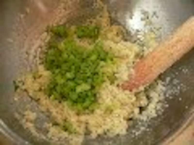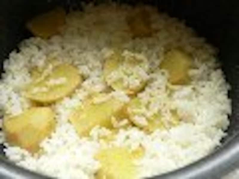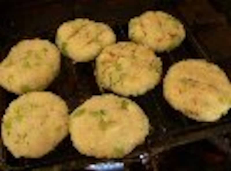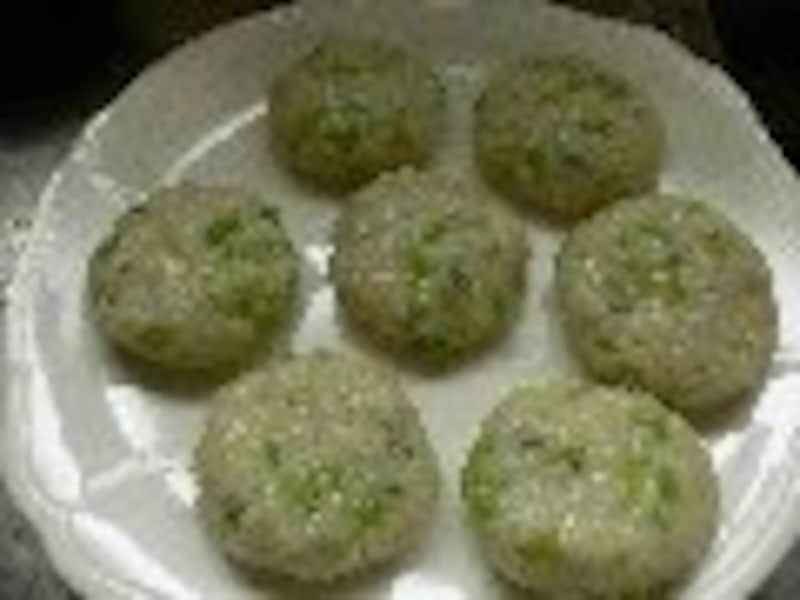 エアーポテト 岐阜県は揖斐川町の郷土料理「菜餅」とは、里芋と米を一緒に炊いて、すりこ木で搗いて、大根の葉を混ぜて、丸めて、焼いて、生姜醤油を塗って食べるという、餅米を使わないお餅のようです。 今日は、その菜餅を、里芋ではなく、エアーポテトで作ってみたいと思います。 エアーポテトってご存知ですか?「宇宙芋」とも呼ばれ、土の中に生るのではなく、宙に浮いてるというか、木にぶら下がるように生るのです。長芋みたいに 生ですりおろして食べるようにと、生産者の方には教わったのですが、すりおろすと、とても粘りがあり、アクも強そうで、火を通した方が持ち味が活かされるのではないかと感じました。 日本の食文化 エアーポテトで作る 菜餅 ■使用した材料■ ・米 ......................1合 ・エアーポテト ................130g ・塩 ...................1つまみ ・大根葉 ................10cmほど ・おろし生姜 ...............適量 ・しょう油 ....................適量 ※今回、大根1本に付いてた10センチほどの茎を使用。できれば葉が入った方が良い。 ■作り方■ 1. 米は炊く30分前にとぎ、内釜にあけて、すこし少なめに水加減する。エアーポテトの皮をむき、小さく切って米の上にのせ、塩を加えて炊く。 2. ボウルにあけてすりこ木で搗き、サッと塩茹でして細かく刻んだ大根葉を加え、搗いてこね、水でぬらした手で丸める。 3. 熱した網でこんがり焼き、生姜醤油を塗って焼き、乾いたらもう一度塗って焼く。 【作って食べた感想】 この餅が、切りたんぽより美味しいかと言えば、そうでもないような。 よりモチモチしてるのかと言えば、切りたんぽの方が勝っており..。この菜餅は、やはり、先人が、より美味しく作るというよりは、米を節約することに重きを置いて考え出した料理なのではないでしょうか。そうは言っても、もっちりした餅の食感と、シャキシャキの大根の葉の歯応えと、ほのかな芋の味わいには、素朴な魅力があります。次のページでは、紫芋を使って甘味を出し、小麦粉を混ぜてシコシコ感を出してみました。 ■ 前回紹介したのは 【厚揚げとチンゲンサイの炒めもの】 12次のページへ
