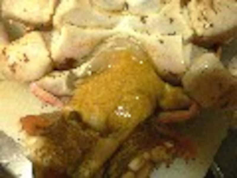 4. 取り出して、蟹の表面についた白いカスのようなものを水で洗い流しす。