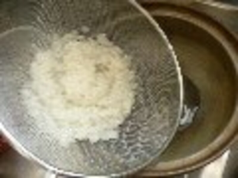 1. 米をといで水を切って土鍋にいれ、米の5倍の水を加える。