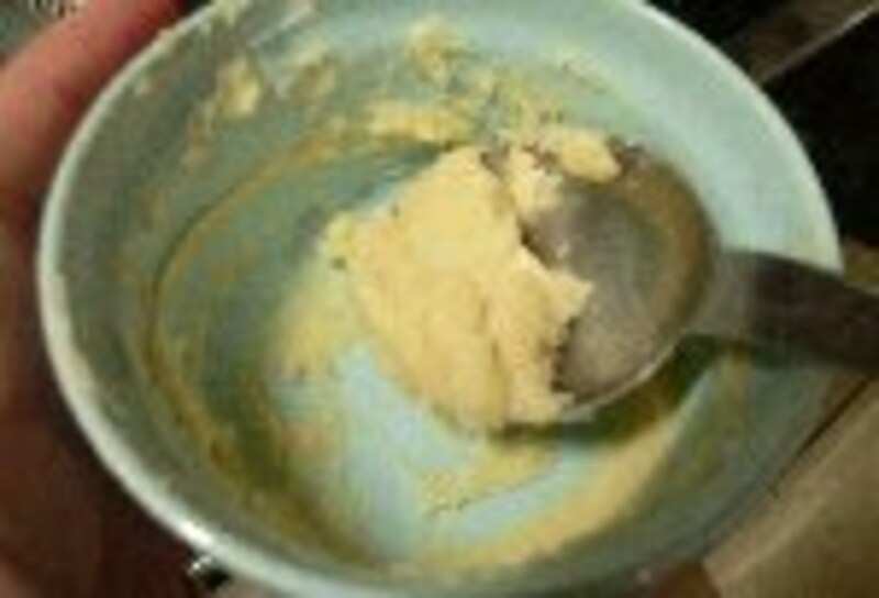 煮込んでる間に、Aのバターと小麦粉を練り混ぜる。(ブールマニエと言う)