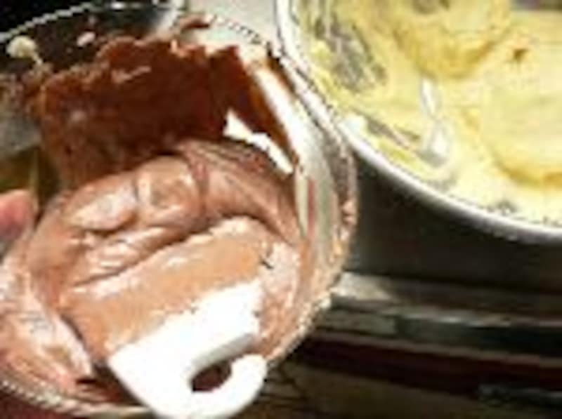 生地の1/3を別のボウルに移し、練ったココアを加えてゴムベラで混ぜる。
