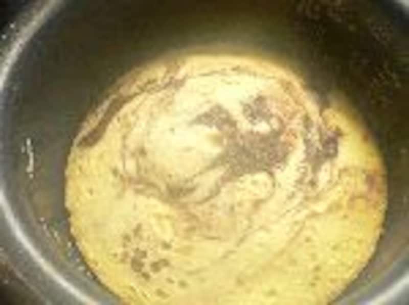 ココアに牛乳を注ぎ入れて、泡だて器で混ぜておく。卵を溶いておく。