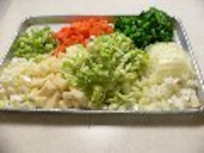 ぎゅっと絞る。玉ねぎと長ネギは粗みじん切り。人参は7~8ミリの角切りにし、じゃが芋、キャベツ、セロリは1cmの角切りにする。