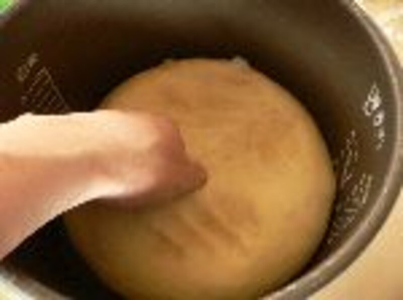 内釜の中で、握りこぶしで押してガス抜きしつつ伸ばす。