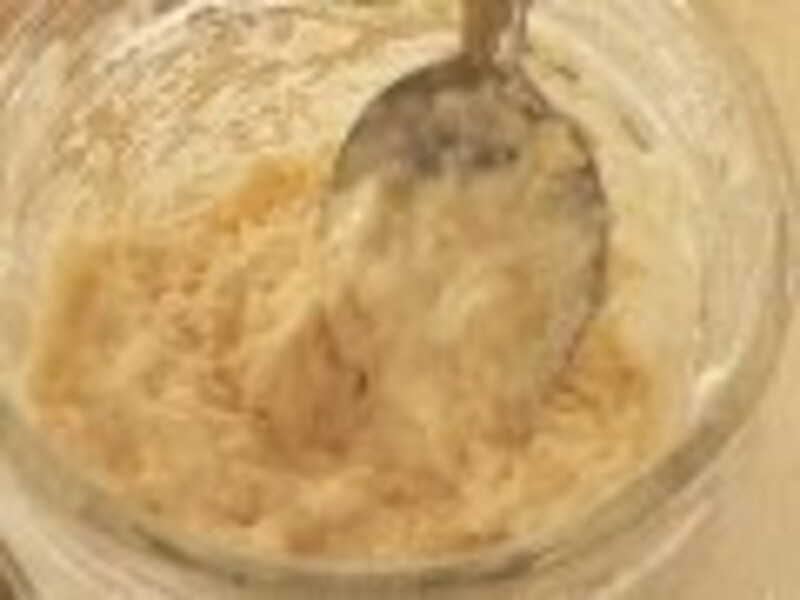 この後、10分間ほど“ねり”に入る。(この“ねり”の前に、フルーツ類入れないと混ざらないので、“ねかし”の最後の方で入れておくと良い。)