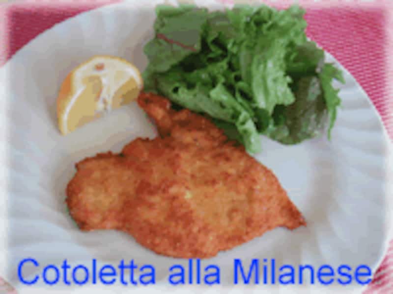 ミラノ風カツレツは、通常仔牛肉を使用しますが、手に入りやすさと味のタンパクさから、鶏の胸肉で代用しました。パン粉にパルミジャーノレッジャーノを合わせるのがポイントです。