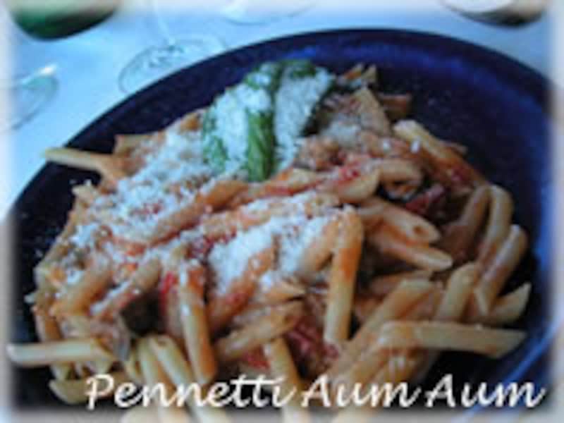 アウムアウムなんて変わった名前ですよね。実はこれ、ここカプリの方言のようで「とっても美味しい」という意味だそうです。つまり直訳すると、「美味しいペンネッティ」になるわけです。材料はいたってシンプルでカプリ島の名産トマト、モッツァレッラ、バジリコ、ナスというものです。
