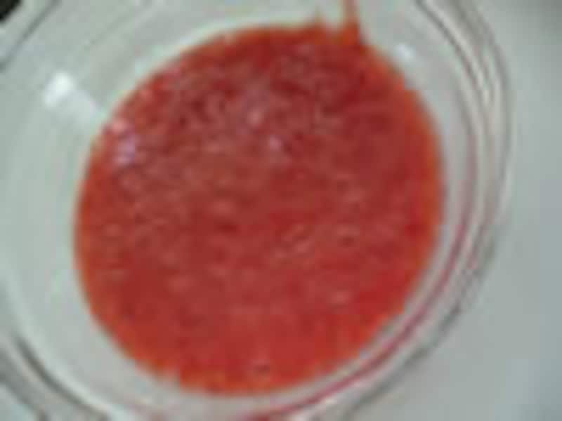 1.板ゼラチンは水に10分位浸して戻しておく。イチゴはヘタをとり、ミキサーにかけ、ピュレ状にする。