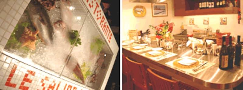 店を入るとすぐ左手に、タイルでできたシチリア風冷蔵庫には鮮魚の数々。いらしたお客様は、ここから本日の魚料理を選ぶことができます。そしてテーブルメニューに加え、黒板メニューもあり、その日のおいしいお料理が書かれています。時にはタリオリーニ・アル・リモーネなどの、シチリアならではのお料理も掲載されています。