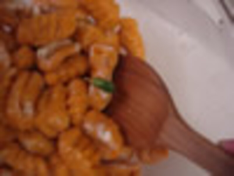 8.ボウルにセージとバターを入れ、湯であがったニョッキを入れ、大きく混ぜ合わせる。皿に盛り、好みですりおろしのパルミジャーノを添える。