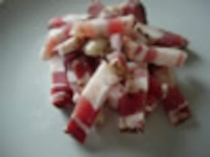 ◆ワンポイント◆ ・本来はパンチェッタではなく、グアンチャーレを使用します。 |