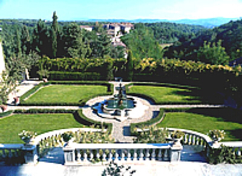 ラ・ヴィッラのテラスから望む庭園。前方にはイル・ボッロ村が見える。span>