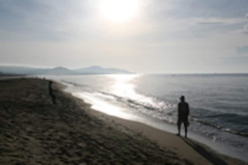 | 朝日に輝くホテル前のプライベート・ビーチ。 |