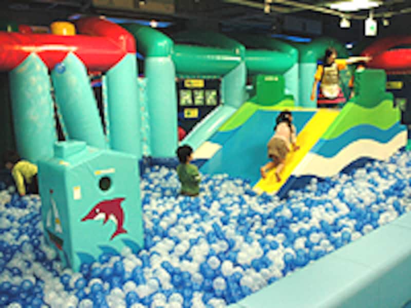 転んでも安心な空気の入ったビニール製の遊具で、小さな子供が楽しめるアトラクションです。さりとて「跳ねる」「登る」「走る」「すべる」「ぶらさがる」など、スポーツ要素がいっぱいの「フワフワサスケ」は子供たちも汗をかいて遊んでいます。大きな積み木のコーナーやバネトビ、ママたちが座って待てるチェアシートがある広場も隣接。入口ではオリジナルキャラクター「とびまっするファミリー」と一緒に記念撮影もできます(台紙付 1枚600円)。30分入替制で料金は子供(身長120cm以下)600円、保護者の同伴が必要で大人は200円です。