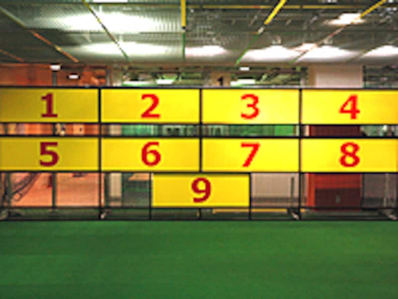 サッカーのゴールに置かれた9つの的をサッカーボールを蹴って射抜く「キックターゲット」。使用しているのは番組で使ったパネルと同じものです。