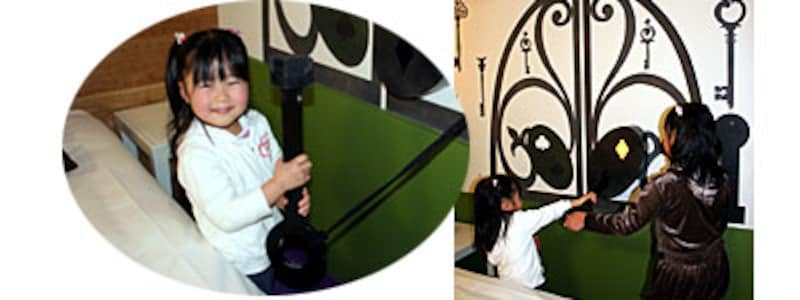 鍵は思った以上に大きいのですが、軽いので小さな子供でも持てる重さです。隣にある鍵穴に入れて回すと……♪……あとは実際に行かれてからのお楽しみに。