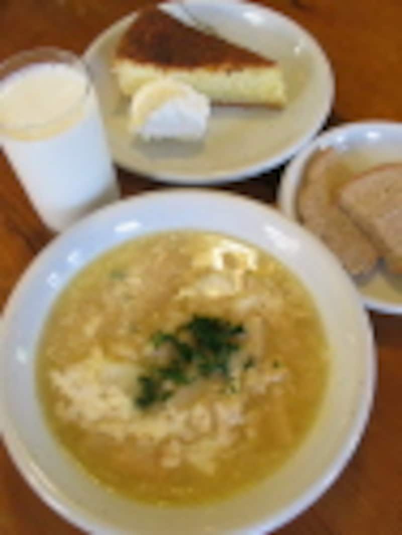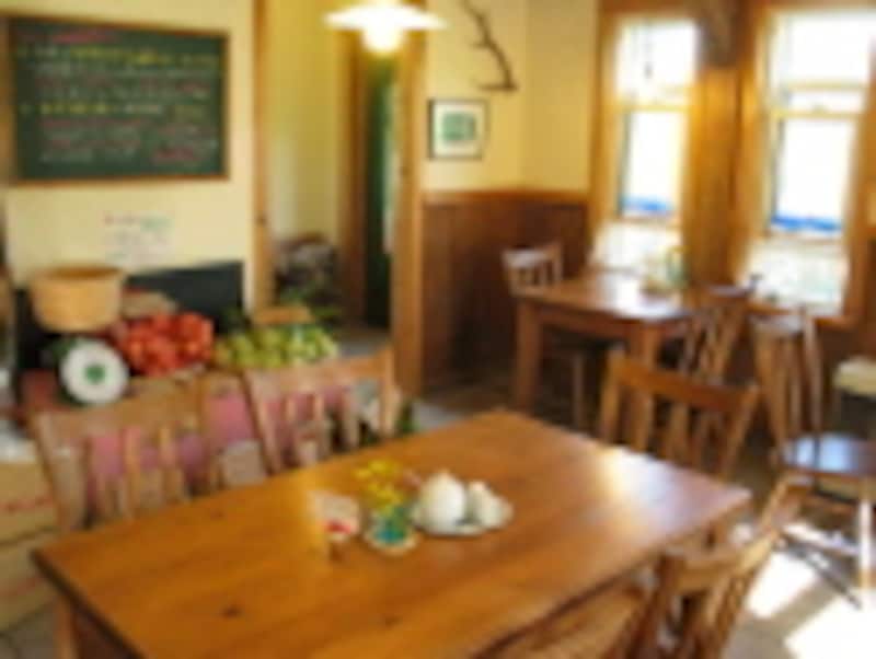 農場の隣にはカフェが。ドイツの家庭料理とケーキが楽しめます。日替わりランチには、ステファンさんが丹精込めて作った野菜を使用。この日は「コールラビ」というキャベツとカブを合わせたような西洋野菜とチキンの煮込みスープ。素朴だけどしみじみと美味しい味わい。セットのケーキはボリュームがあるのに、とても軽い仕上がりなので、ぺロッと完食。ランチは720円、ケーキとドリンク付き1390円。