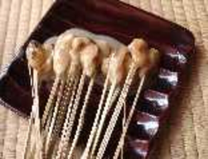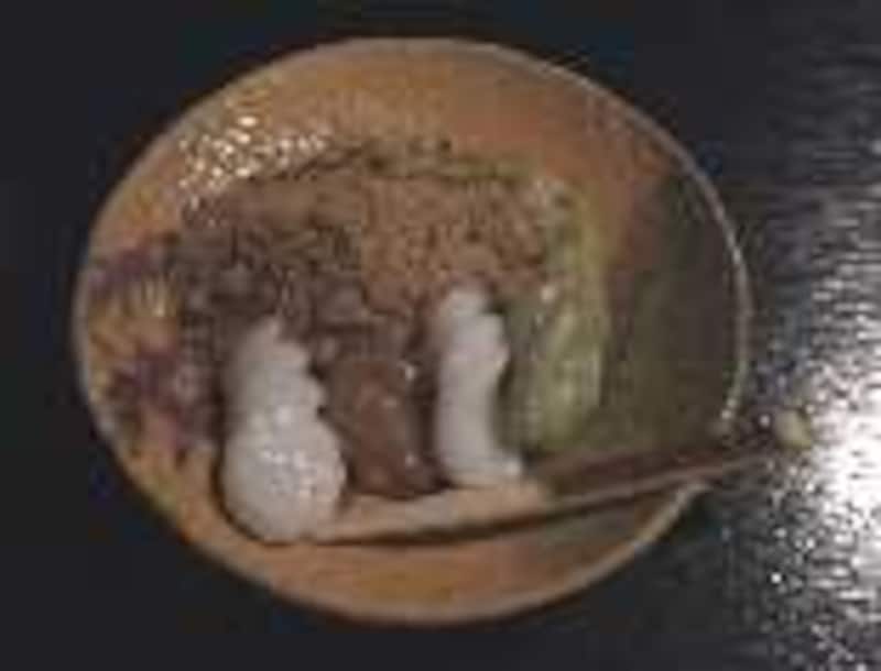 今回紹介するのは鮎ではなく、グネグネねじれたオモシロイ形の、おだんごの一種おしんこ(右写真)。これにきな粉をたっぷりまぶして食べる。きな粉には黒糖が入ってて、普通のきな粉よりず~っとコクがある!桜湯、抹茶付き800円。【お店データ】住所:京都市右京区嵯峨鳥居本仙翁町16 TEL:(075) 861-0359