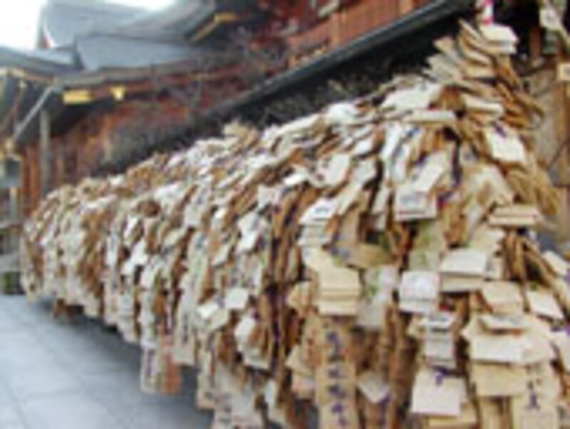 最寄り駅は、地下鉄千代田線「湯島」駅。普段はあまりなじみの無い駅かもしれませんが、実はJR「御徒町」(おかちまち)駅や丸の内線の「本郷3丁目」からも500メートル圏内。御茶ノ水からも歩けない距離ではありません。これから桜の頃、初夏に向けては特に、とりわけ散策の楽しい界隈です。 ご存じのとおり、菅原道真公を祀ったこの神社は、合格祈願のメッカでもあります。しかし、それにしたって、まぁこの絵馬の数!しだれております。場所によっては龍のごとく、天に向けポールを昇っておりました。 人だかりのする社務所をのぞいてみました。“キティちゃん”のお守りだの、“ミニランドセル型”学業成就お守りだの、昔に比べたら色とりどり。しかし、湯島天神の定番といえば、「合格鉛筆」!でしょう。私の母も、高校受験のとき買ってきてくれました。当時は親心子知らず。なんとなくテレ臭くてあんまり使わなかったけど、考えてみたら、都内でもないのにわざわざ電車でお参りに来てくれたんですよね。 1月25日が初天神(鷽替えの神事)だったので、「木鷽(ウソ)」も売ってました。日頃ついついついてしまう嘘=ウソを“まこと”に替え、幸せを呼ぶのだそうです。そんなところから受験生にも人気があるみたいですね。