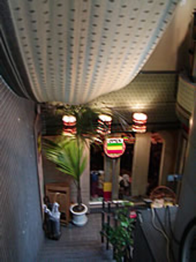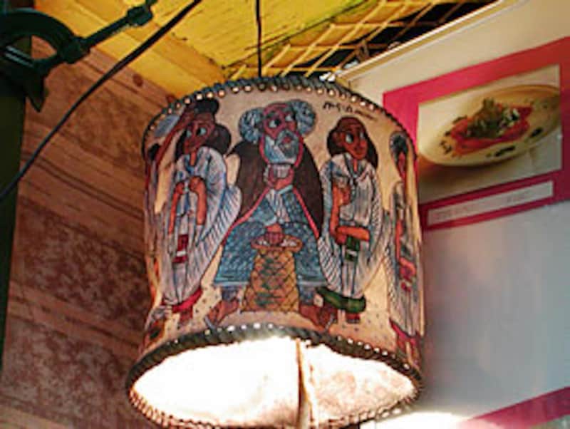 そしてこちらがトラディショナル・セット3.500円。 好きなシチューを3種類選べます。籠の上にしいてあるインジェラもちぎって食べましょう。このように何種類かの“おかず”を盛りつけインジェラと一緒に食べるのが、エチオピア流です。 私がセレクトしたのは、「ヤベルワット(ラムのレッドペッパーシチュー)」「アタルキック(レンズ豆のレッドペッパーシチュー)」「ドロアリーチャ(チキンマイルドシチュー)」の3つ。写真は2人前ですが、見かけより食べごたえがありますよ。 |