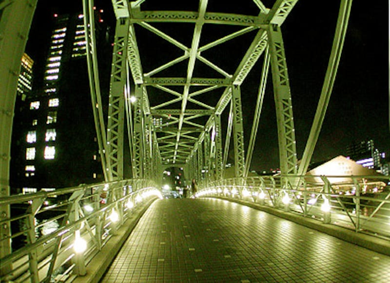 やがて品のある、きれ~いな橋が見えてきます。この「ふれあい橋」周辺はドラマのロケなどによく登場する場所です。十分、ナットク。