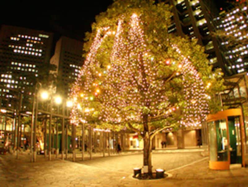 右は、みどりの広場のイルミネーション。ぱっと花が咲いたようで